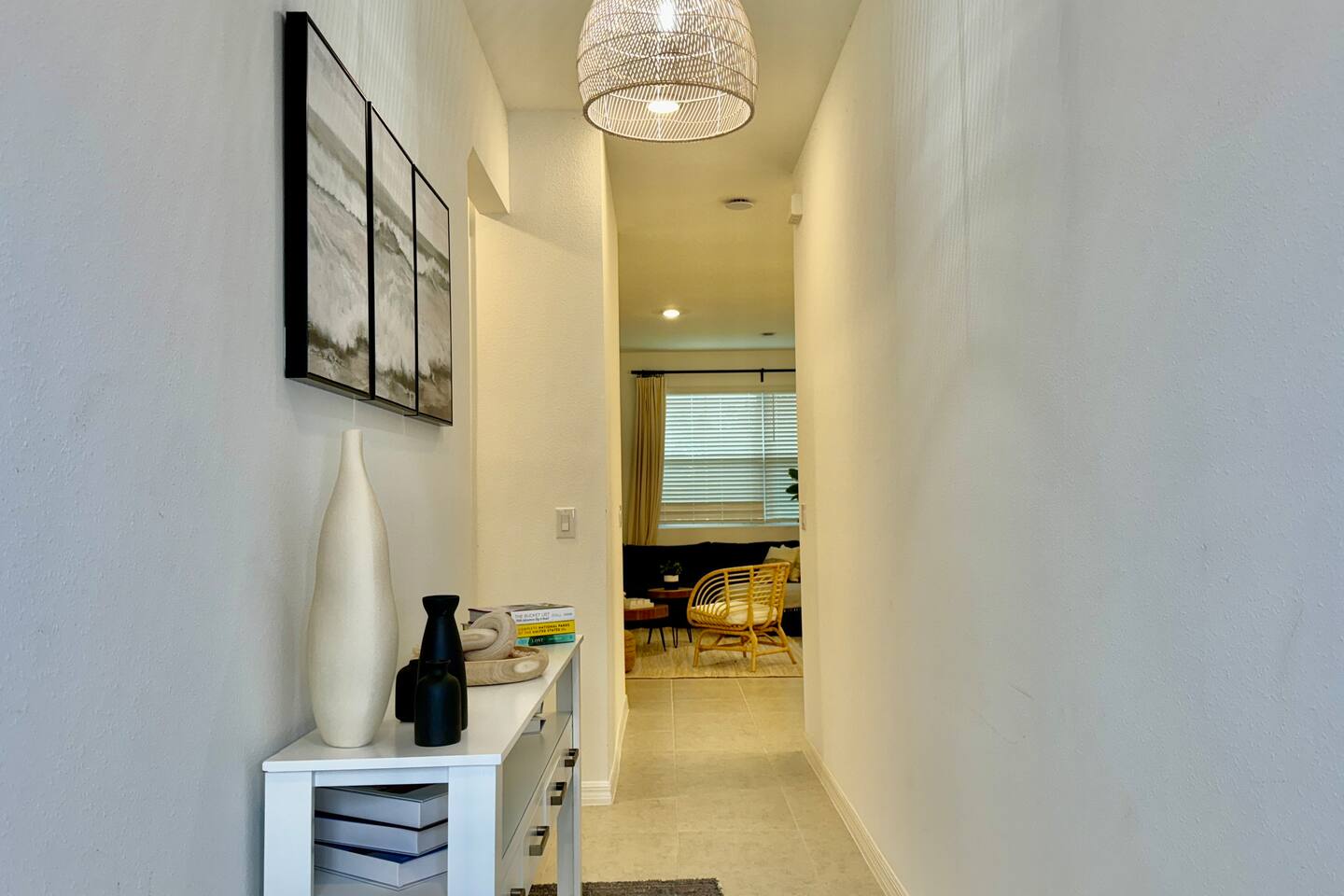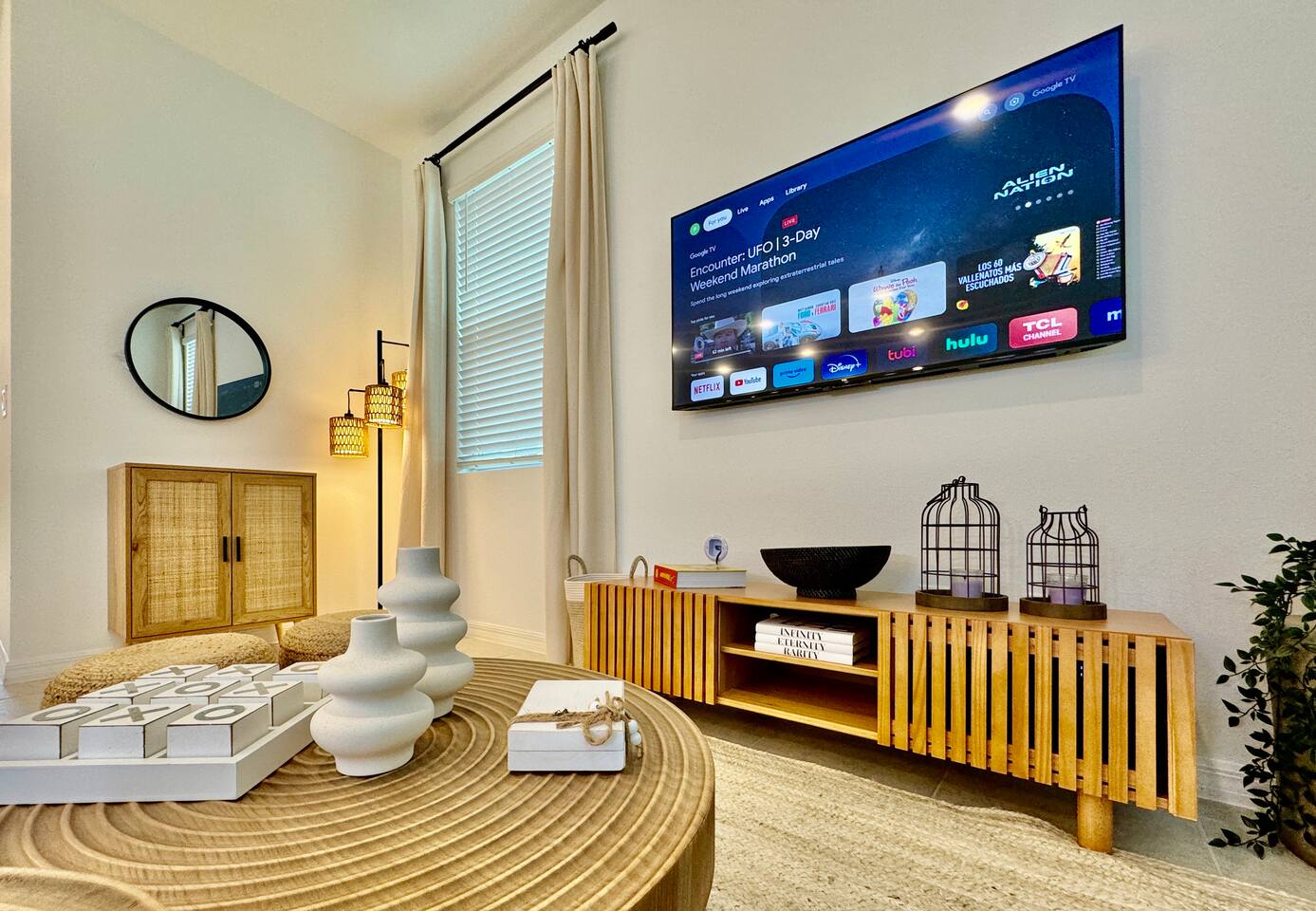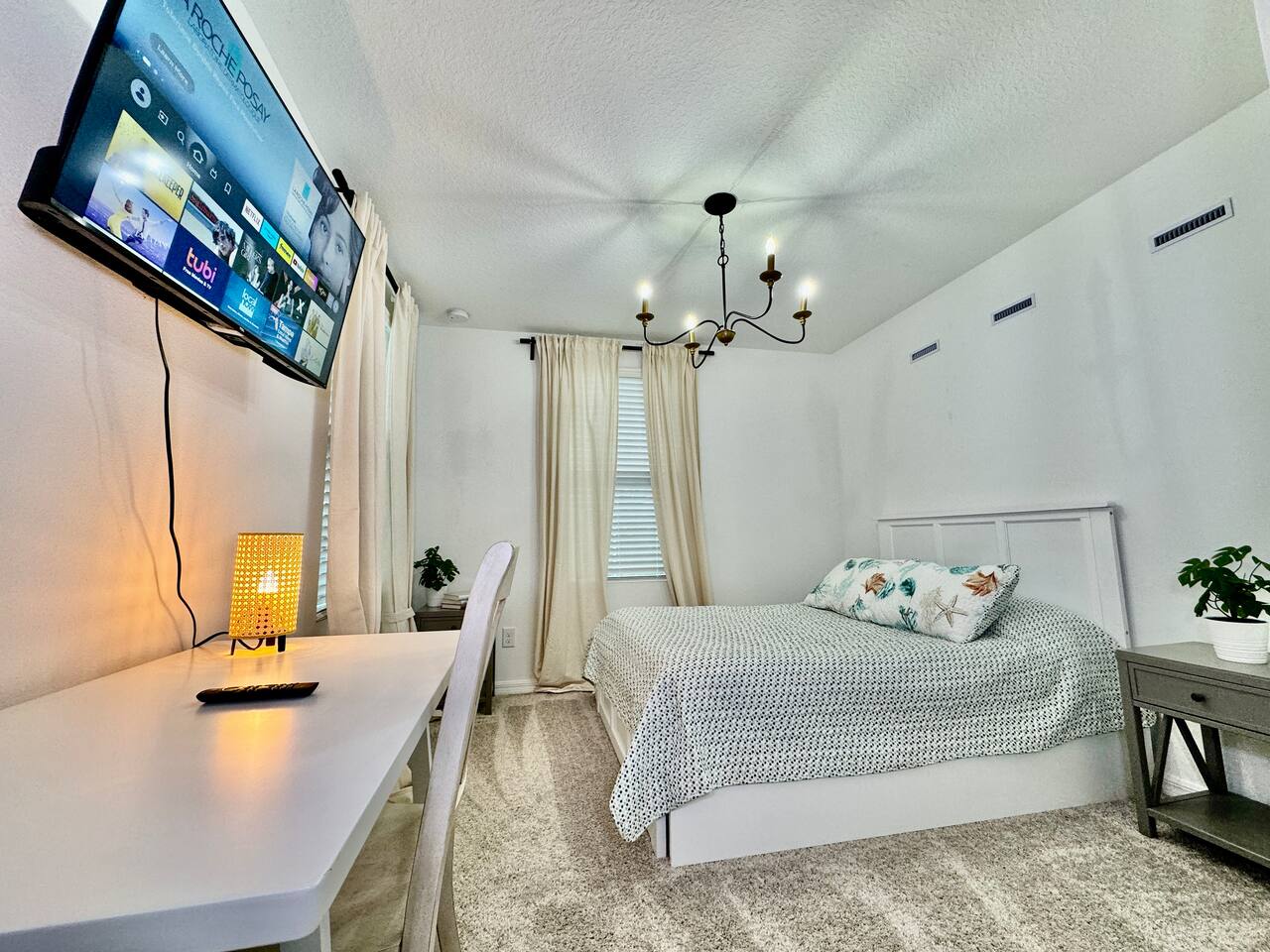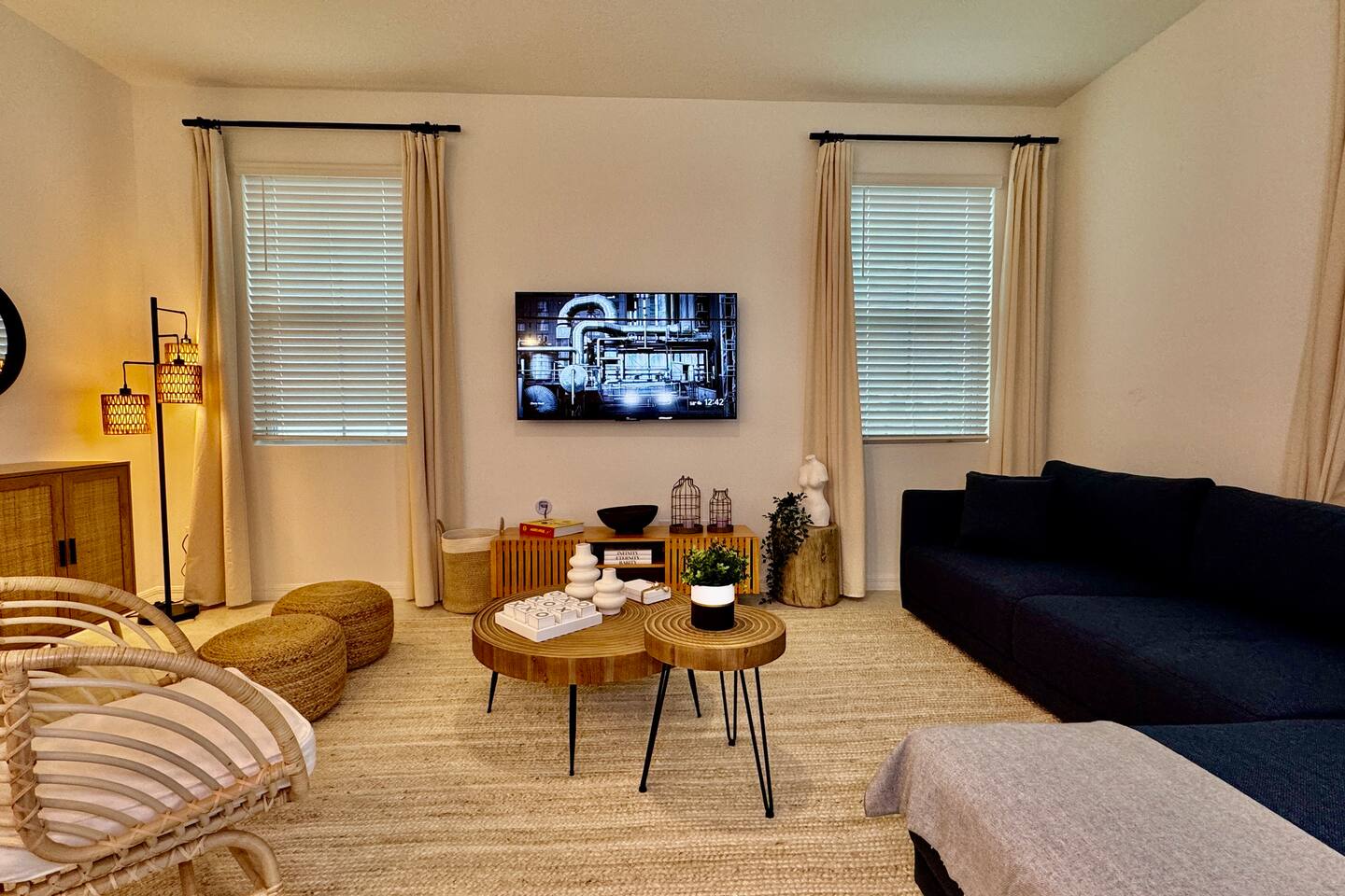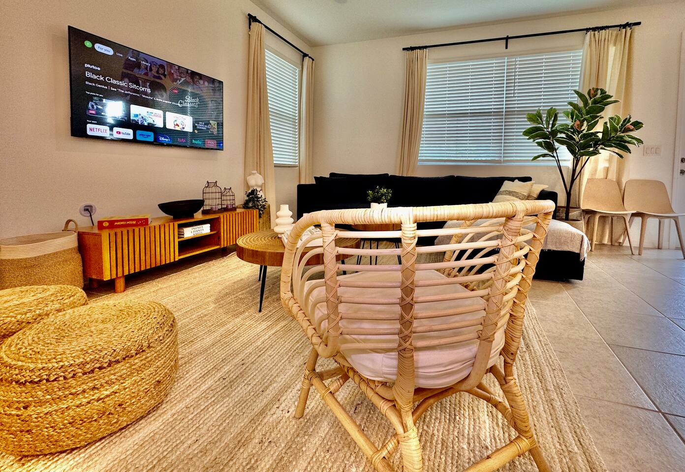 We are thrilled to have you as our guest and want to make sure your stay is enjoyable. To ensure a harmonious experience for everyone, please take a moment to review our house rules. Check-in & Check-out: 4:00 PM check-in, 11:00 AM check-out. Early check-in and late check-out may be available for an additional fee Communication: Contact us only through Airbnb messages. Community office ould not help during your stay No Parties: Strictly no parties or events. Violations result in immediate cancellation and a $1,000 fine. Minimum Age: Primary booking guest must be 21+. ID verification may be required. Respect & Quiet Hours: Keep noise down, especially from 10 PM - 8 AM. Strict No-Smoking Policy: Smoking is strictly prohibited inside the house, in the amenities center, and in all common spaces. No exceptions will be made. Violations of this policy are subject to a minimum fine of $1,000 and may result in immediate termination of the stay. No-Pet Policy: Pets are not permitted on the premises under any circumstances. Bringing animals into the property without prior written authorization will result in a minimum fine of $500 and may lead to cancellation of the reservation. Package Delivery Policy: Guests must request guidance before scheduling any deliveries. We strongly advise against using USPS, as it may result in undeliverable or unretrievable packages. We are not responsible for any packages delivered before check-in or after check-out. Guest Limit: Only registered guests may stay. Notify us of any changes. Cleanliness: Keep the space tidy. Excessive mess may result in additional cleaning fees. Appliances & Safety: Use the provided amenities responsibly. Lock doors/windows when leaving. Exterior cameras are in place for security. Be Neighborly: Respect the community—no loud music or disturbances. Eco-Friendly: Conserve energy by turning off lights and AC when not in use. Lost/Damaged Items: Report any damages immediately to find a solution together. By booking, you agree to follow these rules. Feel free to reach out if you have any questions ************************************************************************************* BOOK your perfect Orlando stay today! Enjoy a stylish space, top amenities, and a prime location near shopping, dining, and attractions. RESERVE NOW! *************************************************************************************