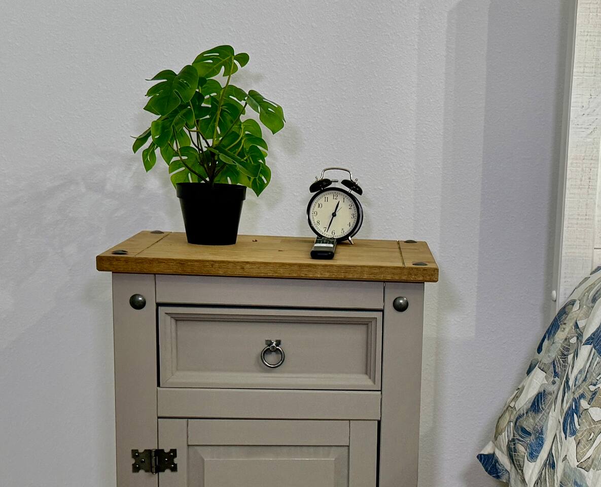 Betreten Sie ein wunderschön gestaltetes Wohnzimmer mit modernen Möbeln, stilvollem Dekor und einem offenen Grundriss, der viel Tageslicht hereinlässt. Ein großzügiger Sitzbereich gruppiert sich um einen großen Smart-TV – ideal für Filmabende oder um Ihre Lieblingssendungen zu schauen. Moderne Akzente und weiche Texturen schaffen eine anspruchsvolle und einladende Atmosphäre zum Entspannen. Direkt dahinter befindet sich eine voll ausgestattete Küche mit hochwertigen Geräten und stilvollen Oberflächen. Die Küche verfügt über einen großen Kühlschrank, Herd, Backofen, Mikrowelle, Geschirrspüler sowie sämtliches Kochgeschirr und Utensilien, die Sie benötigen. Glatte Arbeitsflächen und viel Stauraum verbinden Funktionalität mit hochwertigem Design – perfekt für ein entspanntes Frühstück oder die Zubereitung von Gourmetgerichten. Das Hauptschlafzimmer ist eine luxuriöse private Suite mit einem Kingsize-Bett und hochwertiger Bettwäsche, einem großen Smart-TV und einem bequemen Sessel – ideal zum Entspannen oder Lesen. Das Zimmer ist geräumig und geschmackvoll eingerichtet und bietet einen friedlichen Rückzugsort nach einem langen Tag. Das private Ensuite-Bad ist mit modernen Armaturen, einem großzügigen Waschtisch und einer eleganten Dusche ausgestattet und rundet die Suite komfortabel und stilvoll ab. Das zweite Schlafzimmer ist durchdacht mit zwei Einzelbetten und einem Smart-TV gestaltet und bietet einen funktionalen und stilvollen Raum für Kinder oder Einzelgäste. Dekorative Details und hochwertige Bettwäsche machen dieses Zimmer charmant und komfortabel. Das dritte Schlafzimmer verfügt über ein gemütliches Doppelbett und einen Smart-TV – perfekt für weitere Gäste, die Wert auf Komfort und Bequemlichkeit legen. Es ist modern und sauber eingerichtet und sorgt für einen erholsamen Schlaf. Beide Gästezimmer teilen sich ein stilvolles Gemeinschaftsbad mit modernen Armaturen und viel Licht.