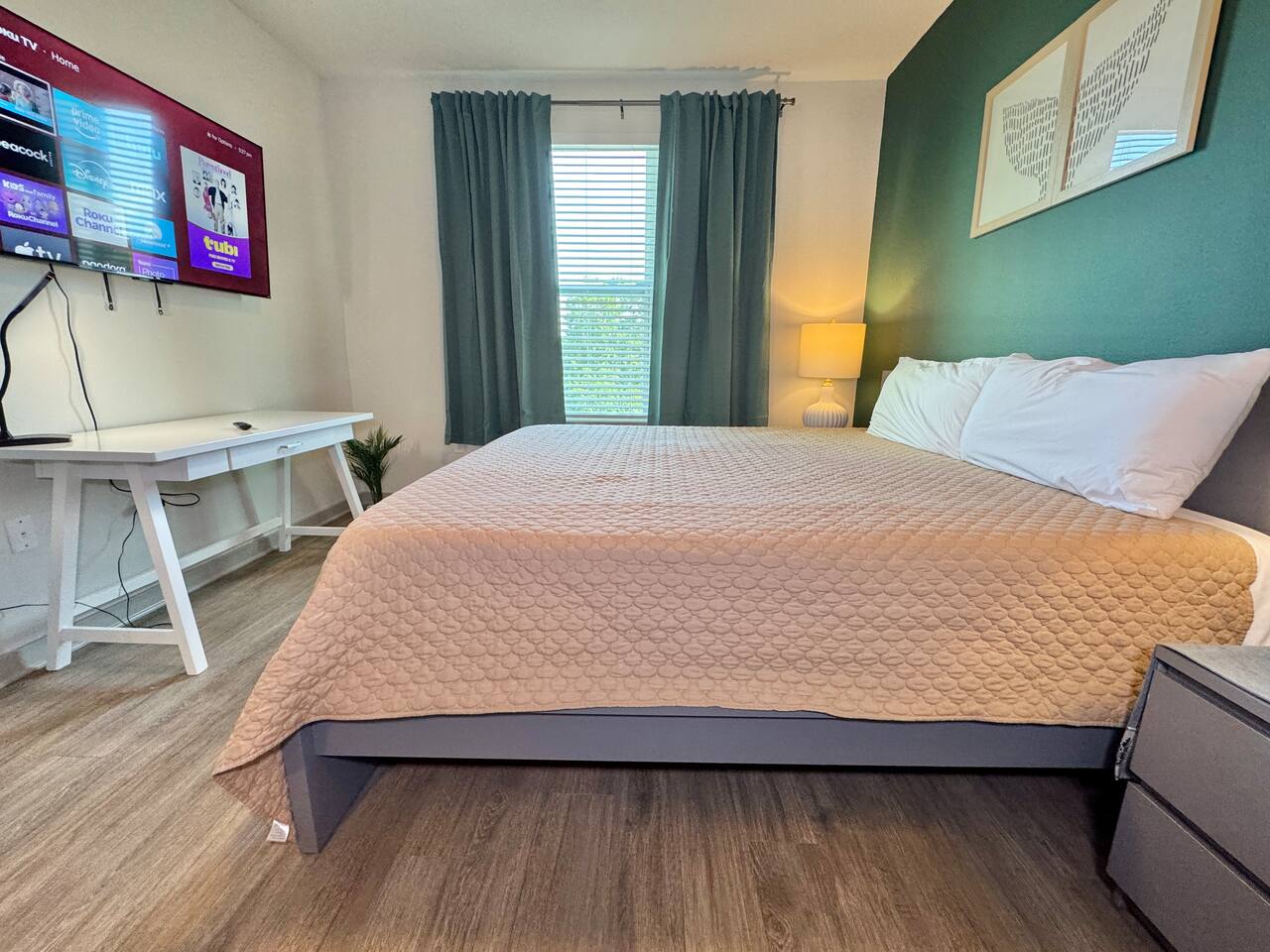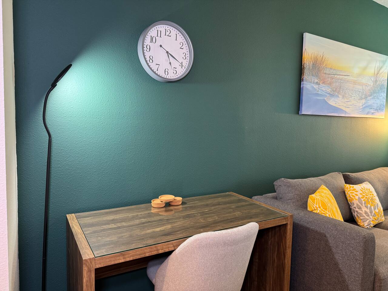 Disfruta de la combinación perfecta de comodidad y aventura en este lujoso apartamento de 1 dormitorio en el cuarto piso de nuestro moderno edificio, al que se accede fácilmente mediante ascensor. Con una cama King y un baño completo con agua caliente y fría, tendrás todo lo necesario para una estancia relajante. Podrás cocinar en la cocina totalmente equipada con todos los utensilios necesarios para preparar y disfrutar tus comidas con facilidad. Lavadora y secadora están convenientemente dentro del apartamento para tu uso. Sal al balcón privado y contempla impresionantes vistas al atardecer, o date un refrescante chapuzón en la piscina de la planta baja. Ubicado en el vibrante Southside de Jacksonville, esta zona ofrece la mezcla perfecta de comodidad y conveniencia. A solo minutos de la I-95, estarás cerca del centro, las playas, St. Johns Town Center y los principales distritos de negocios. El vecindario está lleno de opciones gastronómicas, parques y centros comerciales, lo que lo hace ideal tanto para visitas cortas como para estancias prolongadas. Tranquilo, seguro y caminable: aquí se unen trabajo, viaje y relajación. Ya sea que vengas por trabajo, aventura o descanso, este apartamento es la base perfecta para tu experiencia en Jacksonville.