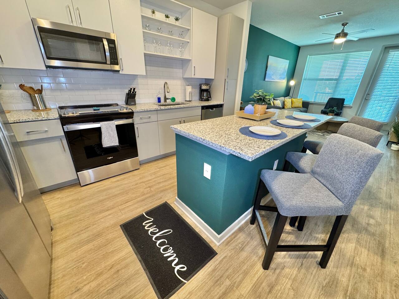 We are thrilled to have you as our guest and want to make sure your stay is enjoyable. To ensure a harmonious experience for everyone, please take a moment to review our house rules. Check-in & Check-out: 4:00 PM check-in, 11:00 AM check-out. Late check-out fee: $100. Communication: Contact us only through Airbnb messages. The leasing office cannot assist. No Parties: Strictly no parties or events. Violations result in immediate cancellation and a $1,000 fine. Minimum Age: Primary guest must be 21+. ID verification may be required. Respect & Quiet Hours: Keep noise down, especially from 10 PM - 8 AM. Strict No-Smoking Policy: This is a smoke-free community. Smoking is strictly prohibited inside the apartment, on balconies, in parking areas, at the pool, and in all common spaces. No exceptions will be made. Violations of this policy are subject to a minimum fine of $1,000 and may result in immediate termination of the stay. No-Pet Policy: Pets are not permitted on the premises under any circumstances. Bringing animals into the property without prior written authorization will result in a minimum fine of $500 and may lead to cancellation of the reservation. Package Delivery Policy: Guests must request guidance before scheduling any deliveries, as carriers are not permitted to deliver directly to the apartment door, and guests do not have access to the community’s package room. We strongly advise against using USPS, as it may result in undeliverable or unretrievable packages. We are not responsible for any packages delivered before check-in or after check-out. Guest Limit: Only registered guests may stay. Notify us of any changes. Cleanliness: Keep the space tidy. Excessive mess may result in additional cleaning fees. Appliances & Safety: Use the provided amenities responsibly. Lock doors/windows when leaving. Exterior cameras are in place for security. Be Neighborly: Respect the community—no loud music or disturbances. Eco-Friendly: Conserve energy by turning off lights and AC when not in use. Lost/Damaged Items: Report any damages immediately to find a solution together. By booking, you agree to follow these rules. Feel free to reach out if you have any questions ************************************************************************************* BOOK your perfect Jacksonville stay today! Enjoy a stylish space, top amenities, and a prime location near shopping, dining, and attractions. RESERVE NOW! *************************************************************************************