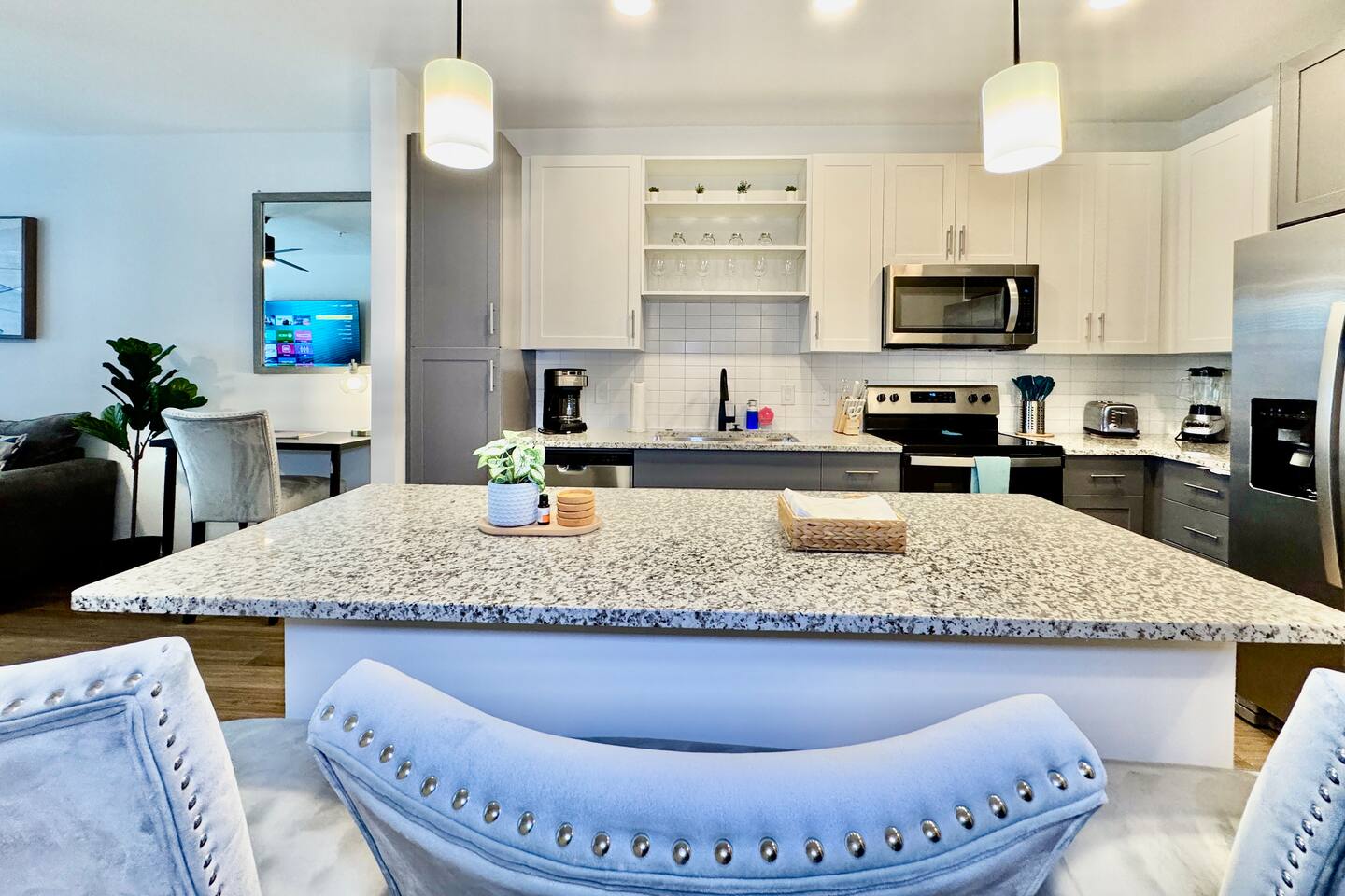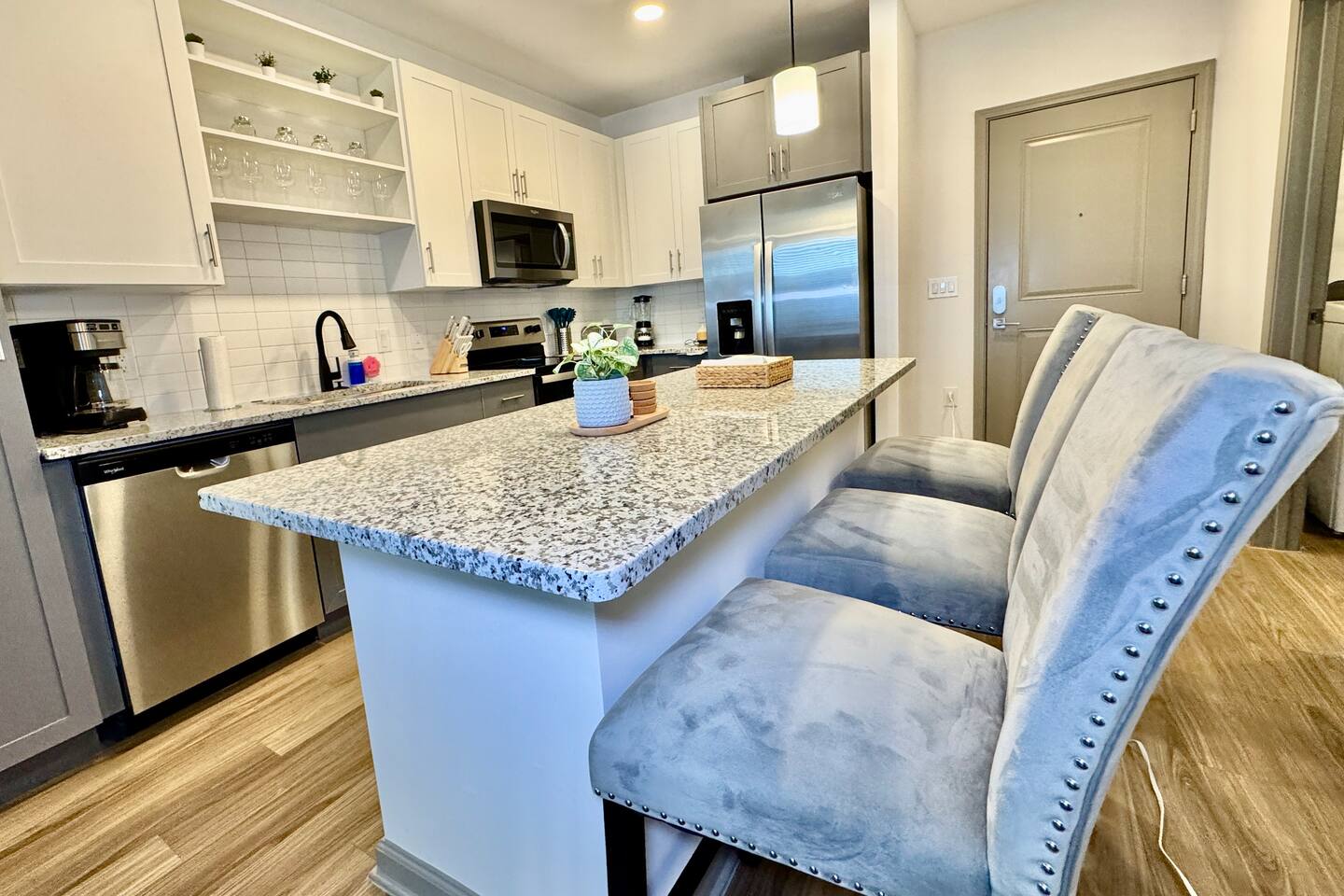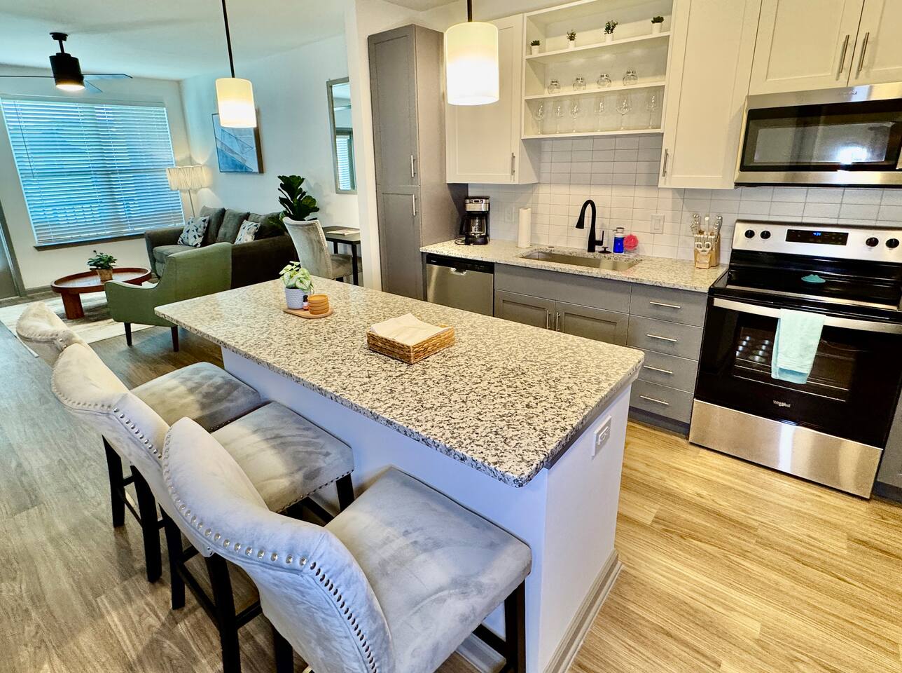 Experience the best of Jacksonville from this luxury 1-bedroom apartment in Southside! You will be just steps from top shopping and dining, with easy access to I-95, downtown, and the stunning beaches of Ponte Vedra. You can start the day with coffee in the modern kitchen before heading out to explore historic St. Augustine or vibrant local hotspots. After a day of adventure, you can unwind in the cozy living area with a smart TV and high-speed Wi-Fi—perfect for a traveler like you!