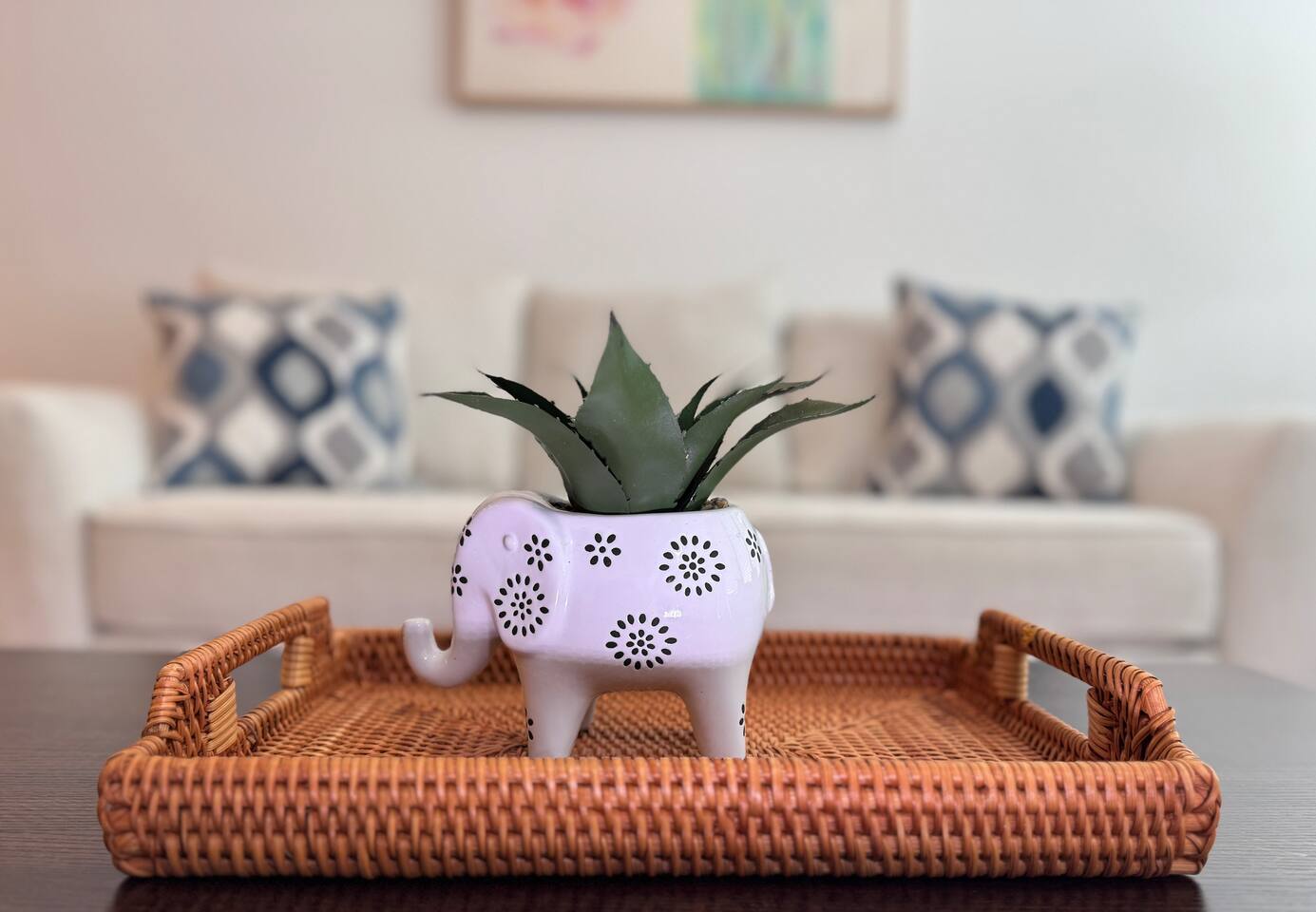 This is a spacious and fully furnished 1-bedroom apartment located on the third floor of a modern building with convenient elevator access. The bedroom features a king-size bed and ample closet space, providing maximum comfort and privacy. The apartment includes a full bathroom with both warm and cold water, ideal for shared or extended stays. The kitchen is fully equipped with all the appliances, cookware, utensils, and dining essentials you need to prepare meals at home. Whether for a short visit or a long-term stay, this setup provides the flexibility and convenience of home living. A washer and dryer are available inside the apartment, making daily routines easier during your stay. The living room is bright and open, offering a relaxing space to unwind. From here, you can enjoy a beautiful sunset view, creating a peaceful ambiance in the late afternoon. This apartment is ideal for long stays, business travelers, or anyone looking for a comfortable and well-equipped space in a convenient location.