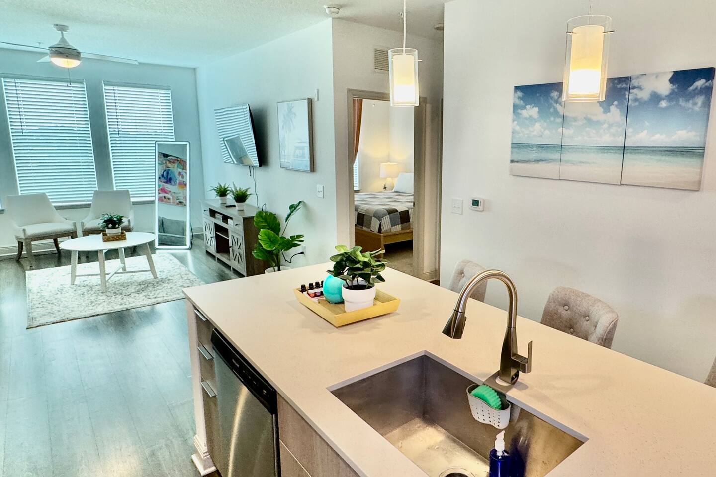 Stay in the best location! This stylish 1-bedroom is in a quiet luxury community with pool and gym. Everything—Mayo Clinic, Town Center, the beach, and Downtown—is 15 minutes or less away. Inside, enjoy a complete kitchen, inviting living space, and cozy bedroom. With a calm setting and professional vibe, this apartment is ideal for business, treatment, or a relaxing Jacksonville getaway.