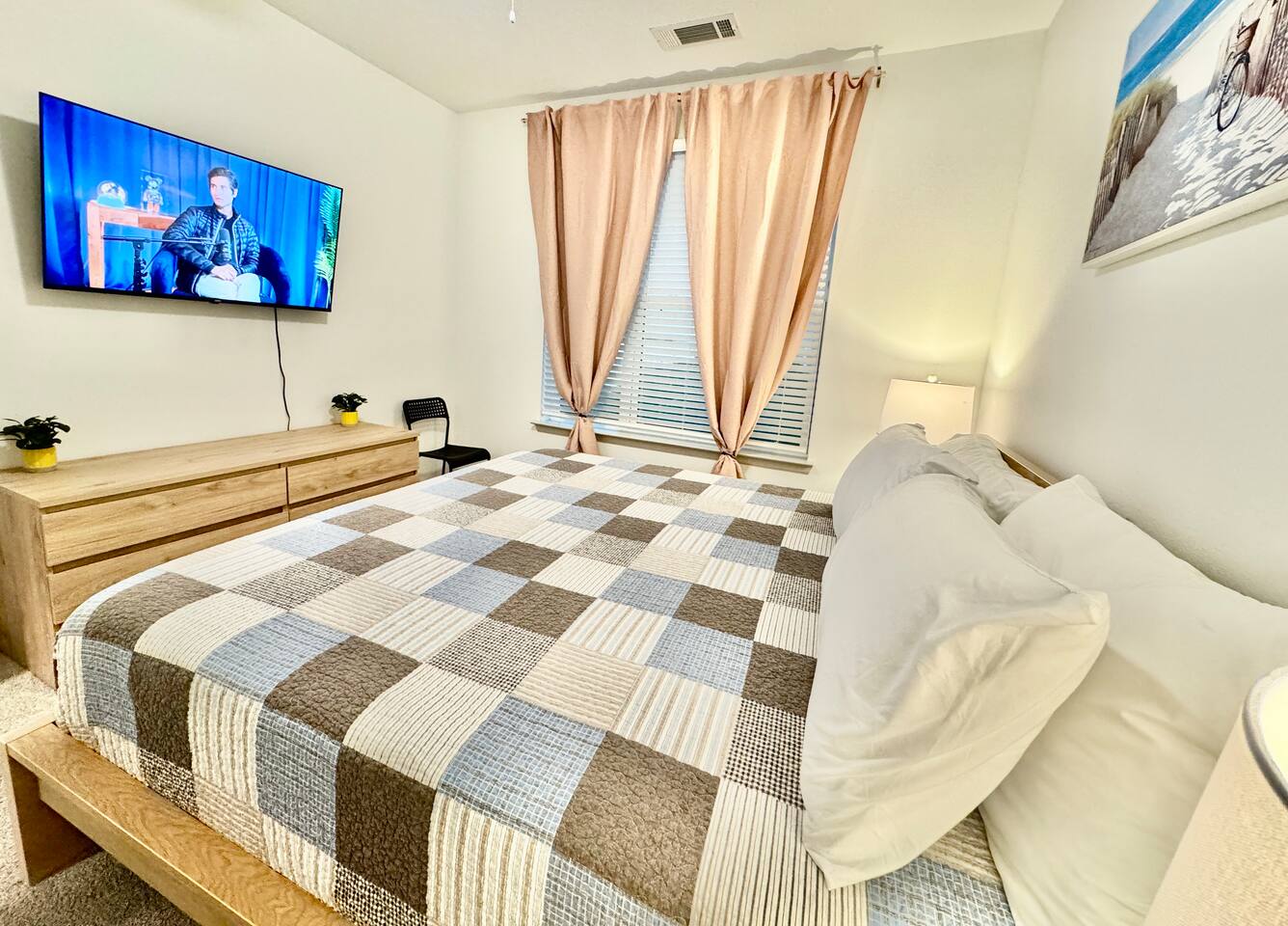 This is a spacious and fully furnished 1-bedroom apartment located on the third floor of a modern building with convenient elevator access. The bedroom features a king-size bed and ample closet space, providing maximum comfort and privacy. The apartment includes a full bathroom with both warm and cold water, ideal for shared or extended stays. The kitchen is fully equipped with all the appliances, cookware, utensils, and dining essentials you need to prepare meals at home. Whether for a short visit or a long-term stay, this setup provides the flexibility and convenience of home living. A washer and dryer are available inside the apartment, making daily routines easier during your stay. The living room is bright and open, offering a relaxing space to unwind. From here, you can enjoy a beautiful sunset view, creating a peaceful ambiance in the late afternoon. This apartment is ideal for long stays, business travelers, or anyone looking for a comfortable and well-equipped space in a convenient location.